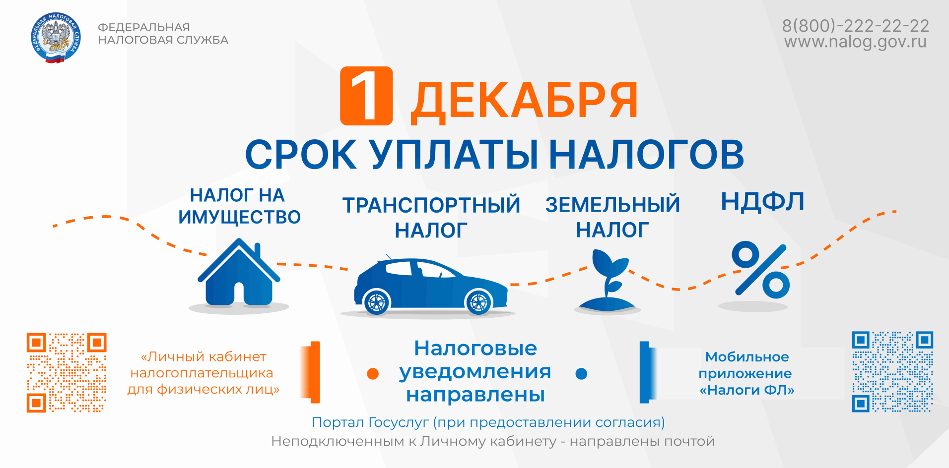 1 декабря 2025 года – срок уплаты имущественных налогов физическими...